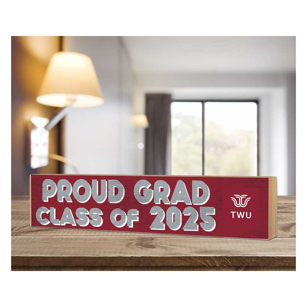 Celebrate the Texas Woman's Pioneers graduate with this Class of 2025 sign. This unique 3x13 Texas Woman's block sign makes the perfect graduation gift and features the Texas Woman's logo displayed next to the words CLASS OF 2025 in bold text. This block sign is designed to stand freely, making it the perfect addition to any dresser, shelf, or desk.