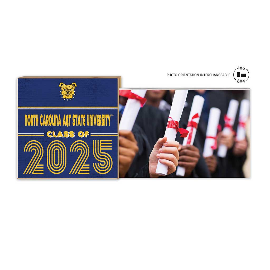 Celebrate the North Carolina A&T Aggies graduate and put your favorite memories on display with this unique NC A&T CLASS OF 2025 photo frame. With its classic style, this floating picture frame has a slot cutout on the side that holds the protective acrylic for your photo. Swap out your picture easily or change the orientation of any 4x6 photo to display it either vertically or horizontally. Display the block on its own if you're still deciding which photo to use.